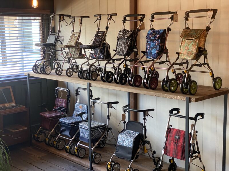 おしゃれな店内にはシルバーカー20台、杖50本以上を展示販売。分かりやすく使い方を説明し、お体に合わせた調整など、商品を販売する時も、した後もしっかり安心できるフォローをさせていただきます。